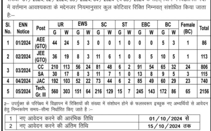 Bihar BSPHCL Various Post Online Form 2024 : Dear Students, Bihar State Power Holding Company Ltd (BSPHCL) has released the advertisement for recruitment under Technical Grade 3, Junior Account Clerk, Store Assistant, Junior Engineer, Assistant Engineer in which there are a total of 4016 posts. All male & female candidates can apply online from 01 April 2024 to 30 April 2024. Candidates can know the complete details related to the Bihar BSPHCL Various Post Online Form 2024 Notification Released like age limit, syllabus, educational qualification, application fee, etc. through the article below. Remember the candidates must read the notification issued by the department once before applying the form. Bihar BSPHCL Various Post Online Form 2024 Overview Recruitment Board Bihar Public Service Commission (BPSC) Post Name Technician Grade IIIJunior Accounts ClerkCorrespondence ClerkStore AssistantJunior Electrical Engineer JEE GTOAssistant Executive Engineer (GTO) Total Vacancies 4016 Category Govt. Jobs Application Mode Online Starts Dates 20 June 2024 Last Dates 19 July 2024 Pay Scale Varies on Post Job Location Bihar Official Website BSPHCL ThinkGovtJobs Whatsapp Channel Join For Jobs Updates Important Dates Event Date Online Apply Start On 20 June 2024 Registration Last Date 19 July 2024 Fee Payment Last Date 19 July 2024 Reopen Apply start 1 Oct. 2024 Apply Last Date 15 Oct. 2024 Exam Date Nov- Dec. 2024 Admit Card Available Notify Soon Application Fee Category Application Fee Gen/ BC/ EBC Rs. 1500/- SC/ ST Rs. 375/- Payment Mode: Pay the Exam Fee Through Credit Card, Debit Card, Net Banking Fee Mode. Age Limit Category Age Limit (as on 31-03-2024) Minimum Age 18 Years for Technician Grade II & Junior Electrical Engineer Minimum Age 21 Years for Other Post Maximum Age 37 Years Age Relaxation Read the Official Notification Vacancy Details & Education Qualification Post Name Advt No. Total Post Educational Qualification Technician Grade III 05/2024 2000 Class 10th Matric Exam Passed with 2 Year ITI Certificate in Electrician Trade. Junior Accounts Clerk 04/2024 300 Bachelor Degree in Commerce B.Com from Any Recognized University in India. Correspondence Clerk 03/2024 150 Bachelor Degree in Any Stream from Any Recognized University in India. Store Assistant 80 Junior Electrical Engineer JEE GTO 02/2024 40 Diploma in Electrical Engineering from Any Recognized Institute in India. Assistant Executive Engineer (GTO) 01/2024 40 BE / B.Tech Degree in Electrical / Electrical and Electronics Engineering.UR 60% Marks, BC / EBC : 55% MarksSC / ST : 50% Marks Category Wise Vacancy Details Post Name UR EWS SC ST EBC BC Total Technician Grade III 500 200 400 40 500 360 2000 Junior Accounts Clerk 70 30 62 7 80 55 300 Correspondence Clerk 38 15 30 03 37 27 150 Store Assistant 20 08 16 02 20 14 80 Junior Electrical Engineer JEE GTO 0 04 12 02 12 10 40 Assistant Executive Engineer (GTO) 25 04 0 02 02 07 40 Bihar BSPHCL Various Post Online Form 2024 Selection Process The Bihar BSPHCL Various Post Online Form 2024 Selection Process is the given below: How to apply for Bihar BSPHCL Various Post Online Form 2024 ? The candidate follows these given steps to apply online for Bihar BSPHCL Various Post Online Form 2024: ➢ 1. Candidate click on the provided Apply Online Link or visit the official website at BSPHCL . ➢ 2. Candidate Can Apply Between 20 June 2024 to 19 July 2024. ➢ 3. Now fill out the application form with the required information. ➢ 4. Then upload the necessary documents as specified in the application form. ➢ 5. Click on the “Preview” tab to cross-verify all the information provided by the candidate. ➢ 6. Pay the required application fees through the provided payment method. ➢ 7. Friends, now once submitted, print a copy of the application form for future reference. Important Links Vacancies Increased and Apply Reopen Notice Notice Apply Online Click Here(20/06/2024) Rescheduling Notice Notice Download Official Notification AEE GTOJEE GTOStore Assistant/ Corr. ClerkJunior Accounts ClerkTechnician Grade 3 Download Syllabus Syllabus Join Our Telegram Group Click Here Join Our Whatsapp Channel Click Here Join Our Whatsapp Group Click Here Official Website BSPHCL FAQs – Bihar BSPHCL Various Post Online Form 2024. For more job updates, follow Thinkgovtjobs on Facebook, Twitter, Instagram, and join our community on Telegram.